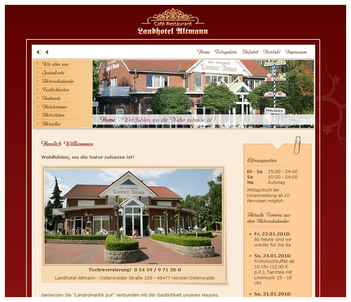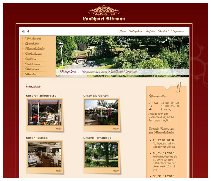 Besonderheiten: Pflegemöglichkeit für die Aktualisierung der Speisekarte, der Galerie, der Saalvermietung und des Aktionskalenders.